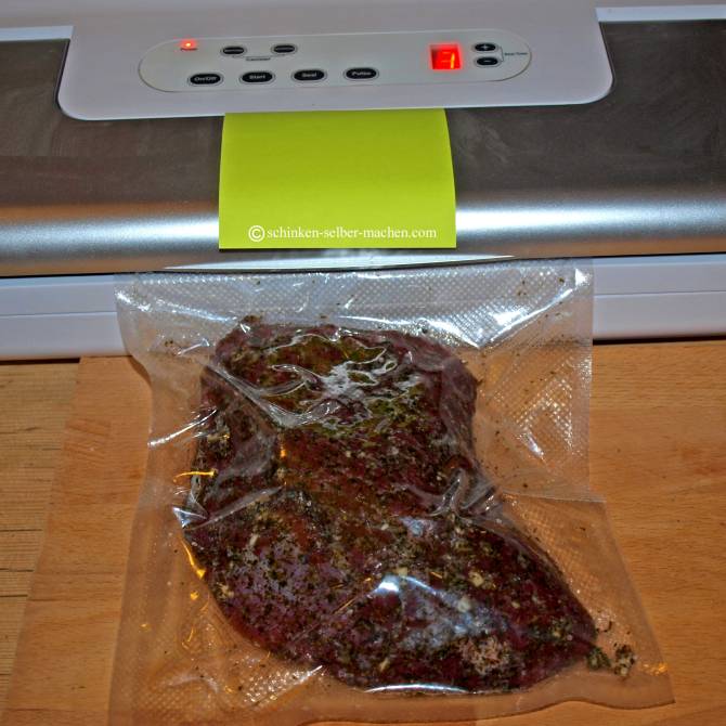 Schinken aus der Oberschale WildschweinDas Vakuumpökeln ist eine saubere und platzsparende Angelegenheit und vor allem im Sommer ein Vorteil. Weiterlesen...